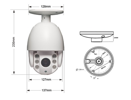 紅外距離30米, 一體光敏, 光敏靈敏度0~5Lux |